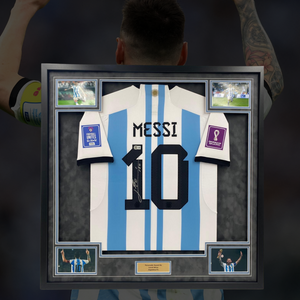 This shirt is more than a signature — it’s a symbol of destiny fulfilled. From the streets of Rosario to the global stage in Qatar, Lionel Messi’s journey is now etched in history — and this framed shirt lets you bring that moment home.