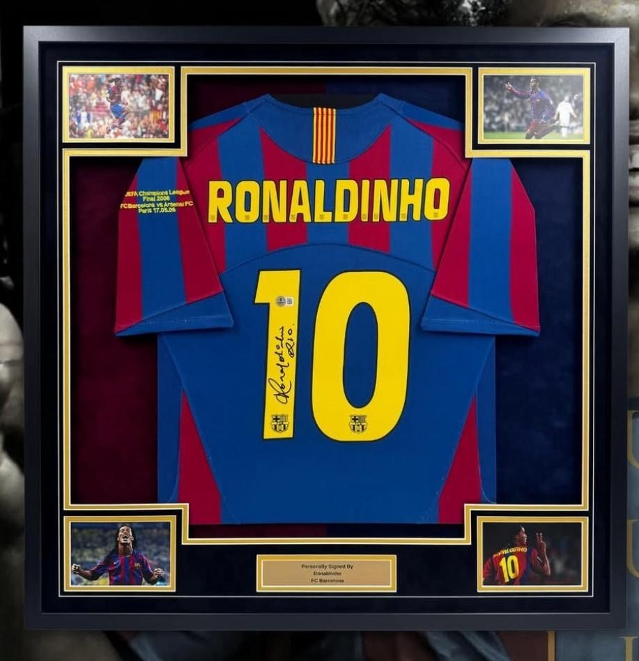 The Magician’s Mark: Ronaldinho Signed Barcelona Shirt Display