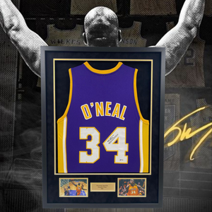 Celebrate the era of one of basketball’s most unstoppable forces with this imposing Shaquille O’Neal signed Los Angeles Lakers jersey (#34), professionally framed to honour the dominant centre who ruled the early 2000s.